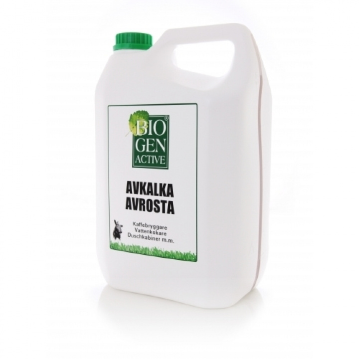 Bio Gen Active® Avkalka/ Avrosta är ett kraftfullt rengöringsmedel som effektivt löser kalkbeläggningar och rost i både hem och industri. Produkten innehåller Bio Gen Active® ett 100 % naturligt och miljöoptimerat ämne baserat på vassle som ger hög rengöringskraft samtidigt som den skyddar hud och material.