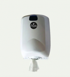 Dispensersystemet är utformat för smidig påfyllning och enkel användning. Papperet matas ut kontrollerat för att minska förbrukningen och säkerställa god hygien. Den kompakta designen gör den idealisk för mindre utrymmen såsom kök, toaletter, personalutrymmen, verkstäder och andra miljöer med medelhög till hög förbrukning.