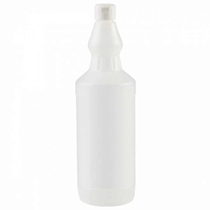 Transparent 1,0 liters systemflaska av miljövänlig polyeten (PE).