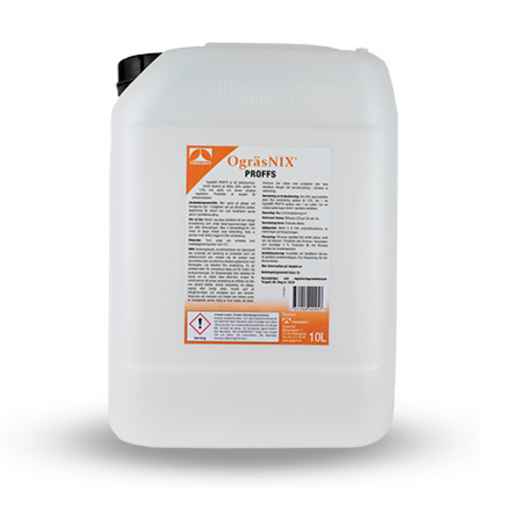 Ättiksyrahalten är 250 g/l (24 vikt-%). Bekämpningsmedlet är klassificerat som 2L, registreringsnummer: 5630. OgräsNIX Proffs levereras som koncentrat i en 10 L dunk.
