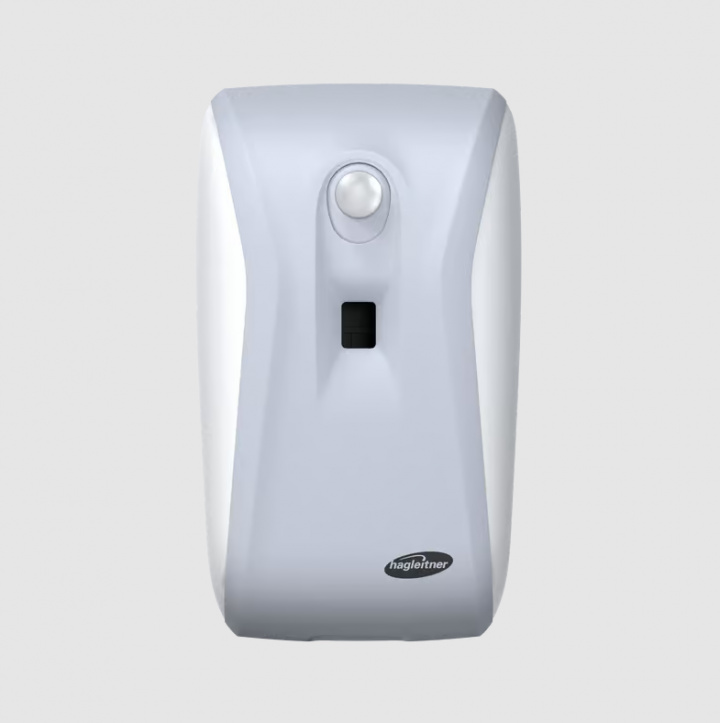 Doftdispenser som kan programmeras individuellt efter verksamhetens tider. Lock som kan öppnas med en hand och är låsbart. Hölje av antistatisk och slagtålig plast. Enkel och säker påfyllning med Hagleitners doftpåfyllningar utan drivgas. Strömförsörjning via elnät, energyBOX eller batteri. Inställningar samt information om fyllnadsnivå, energistatus och servicebehov kan hämtas via Hagleitner360-appen.